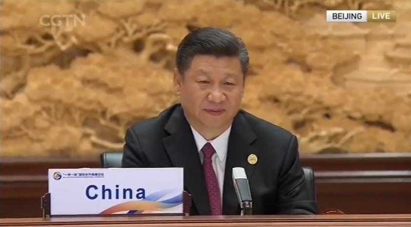Chinese President Xi Jinping speaks at the beginning of the Leaders' Roundtable Summit of B&R Forum in Beijing on May 15. [Photo/CGTN] |
