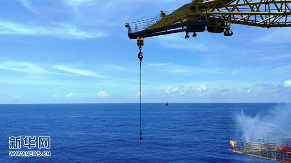 The mining of combustible ice, a natural gas hydrate, is underway in the Shenhu area of the South China Sea on July 9, 2017. [Photo/Xinhua] |