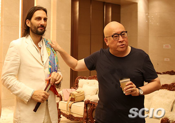 Bass opera singer Tian Haojiang (right) and Italian artist Andrea Zaupa. [Photo by Wu Xiaoshan/China SCIO] |