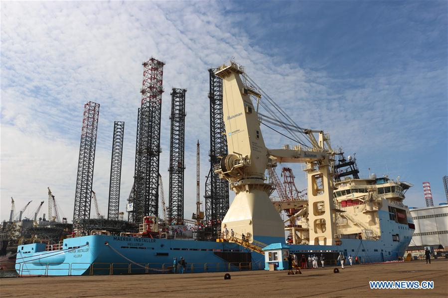 Photo taken on Oct. 16, 2017 shows an ultra-abyssal underwater support vessel "Maersk Installer", the first underwater support vessel exported by Chinese shipyards, in Dalian, a port city in northeast China's Liaoning Province. Built by COSCO (Dalian) Shipyard for Danish company Maersk Supply Service, the vessel can support marine engineering projects as deep as 3,000 meters, all year-round, in the sea anywhere in the world except in the Arctic and Antarctic. (Xinhua/Bai Yongquan) |