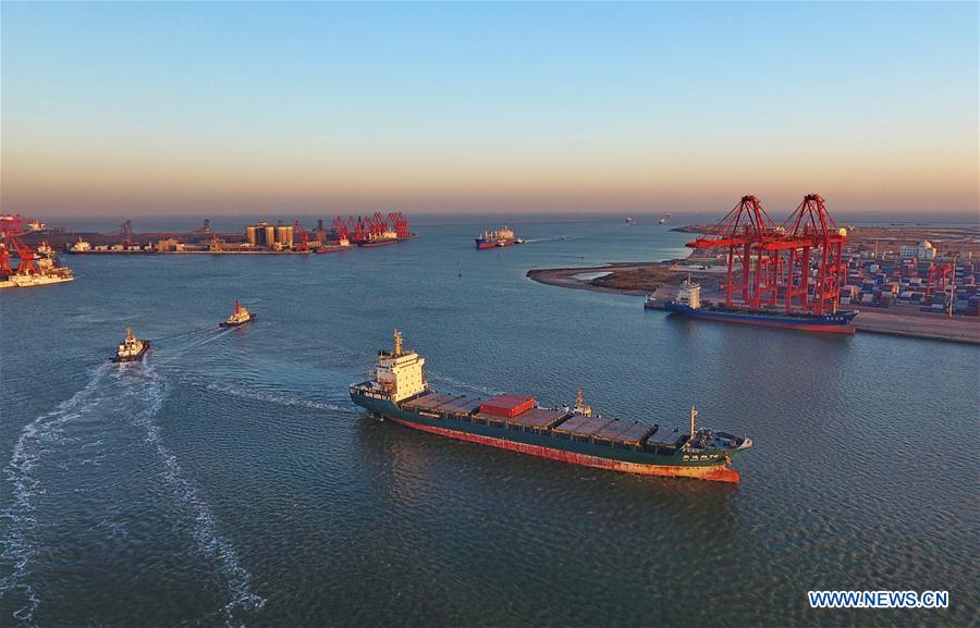 Cargo ships are seen in Tangshan Port, north China's Hebei Province, Oct. 30, 2017. Until Oct. 29, Tangshan Port has handled 1.51 million TEU (twenty-foot equivalent unit) containers this year, up 33.85 percent year-on-year. [Photo/Xinhua]