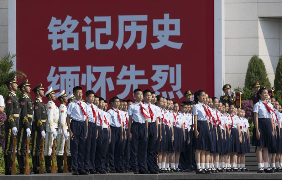 Students attend a ceremony to mark the 88th anniversary of the start of the entire nation's resistance against Japanese aggression, in Beijing, capital of China, on July 7, 2025. (Xinhua/Cai Yang)