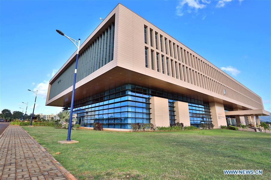 Photo taken on July 26, 2018 shows the Noah Wealth Center, located at the Jinfei Economic, Trade & Cooperation Zone (Jinfei Zone), 3.5 kilometers west of Port Louis, capital of Mauritius. The China-built Jinfei Zone that occupies 211 hectares of land is located 3.5 kilometers west of the Mauritian capital of Port Louis near some of the country's most iconic landscapes. [Photo/Xinhua]