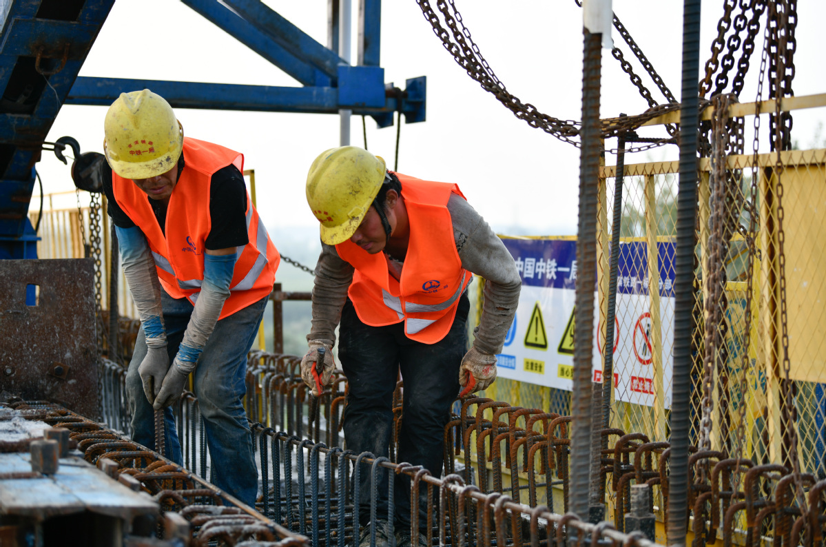 Employees of China Railway First Group carry out construction work in Tianjin in September. [Photo/Xinhua]