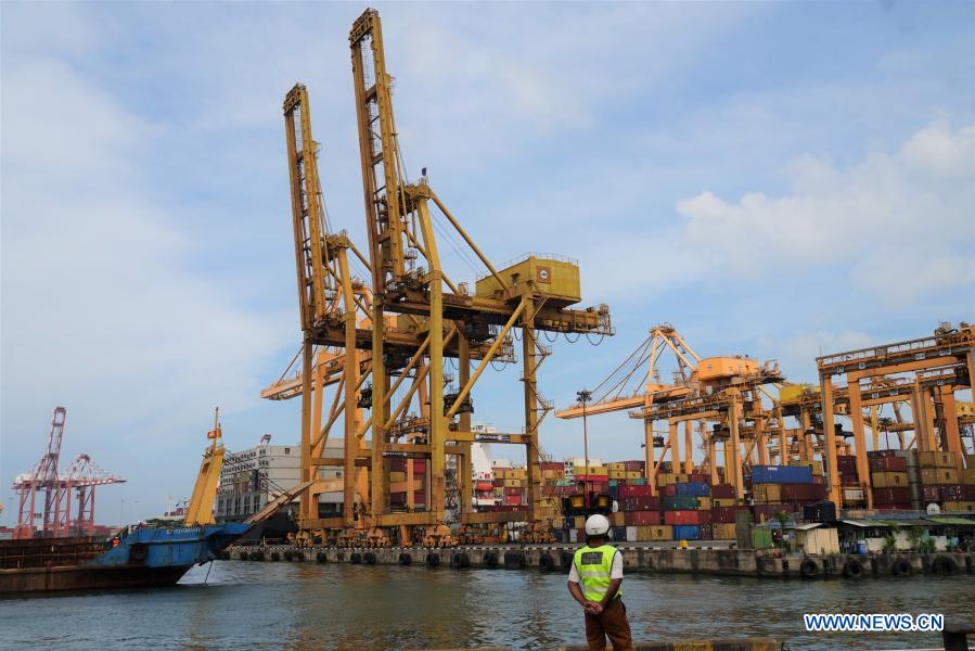 An engineering boat of the China Harbor Engineering Company (CHEC) stands by at the Jaya Container Terminal (JCT) at the Port of Colombo, Colombo, Sri Lanka, Dec. 1, 2020, getting ready for the JCT expansion project. CHEC has begun construction for the expansion of the JCT in the Port of Colombo in Sri Lanka. Expansion of the fifth phase of the JCT was initiated on Tuesday. [Photo/Xinhua]
