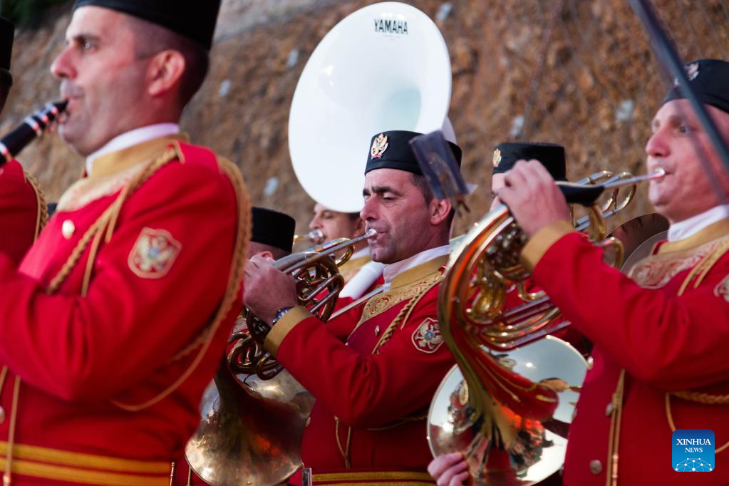 Musicians play at the opening ceremony of the Chinese-built highway section in Podgorica, Montenegro on July 13, 2022. The 41-km priority Smokovac-Matesevo section of Montenegro's Bar-Boljare Highway built by a Chinese company was opened Wednesday. (Xinhua/Shi Zhongyu)