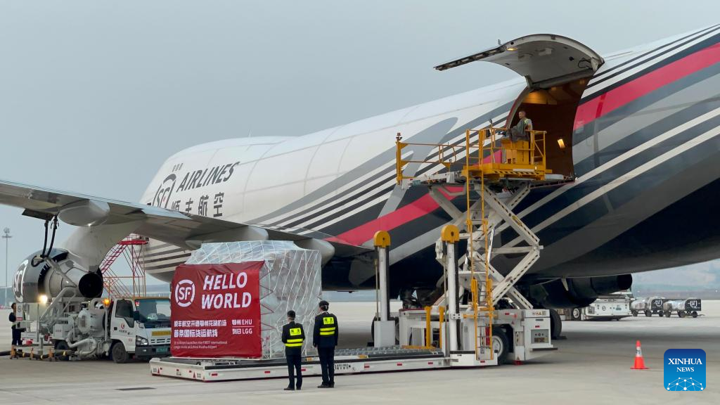 This flight marks the opening of the first international route of China's first cargo-focused airport.