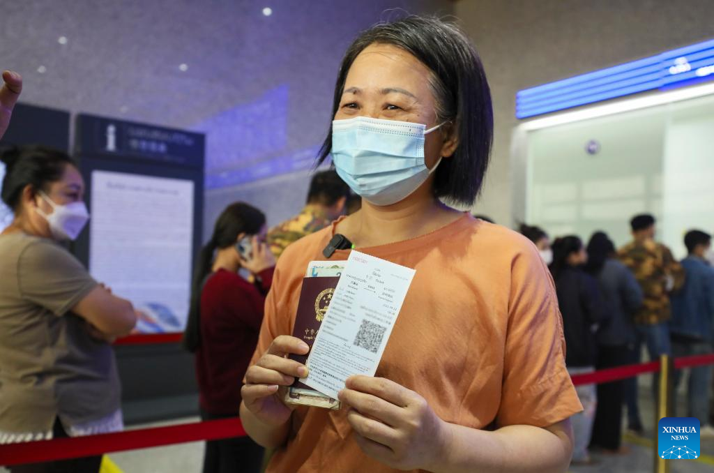A Chinese passenger displays the cross-border train ticket she has just purchased at the ticketing office of the Vientiane Station of the China-Laos Railway in Vientiane, Laos, April 11, 2023. The cross-border passenger service on the China-Laos Railway to be launched on Thursday has been regarded as a historic event, which will be a significant achievement of the China-Laos cooperation under the framework of the Belt and Road Initiative. (Photo by Yang Yongquan/Xinhua)