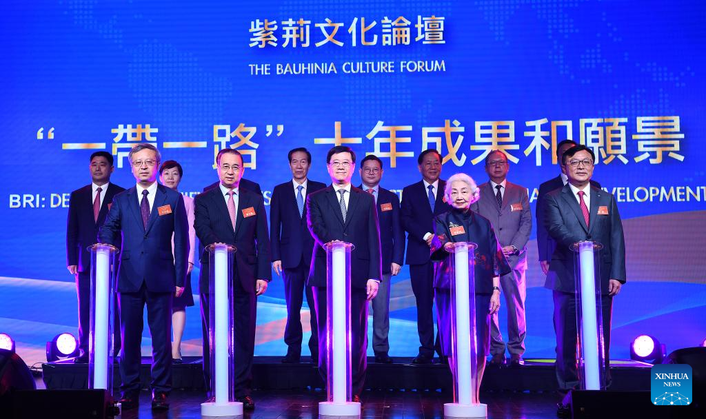 This photo taken on June 7, 2023 shows a scene of the Bauhinia Culture Forum on "BRI: decade of achievements and prospects of high-quality development" in Hong Kong, south China. (Xinhua/Chen Duo)