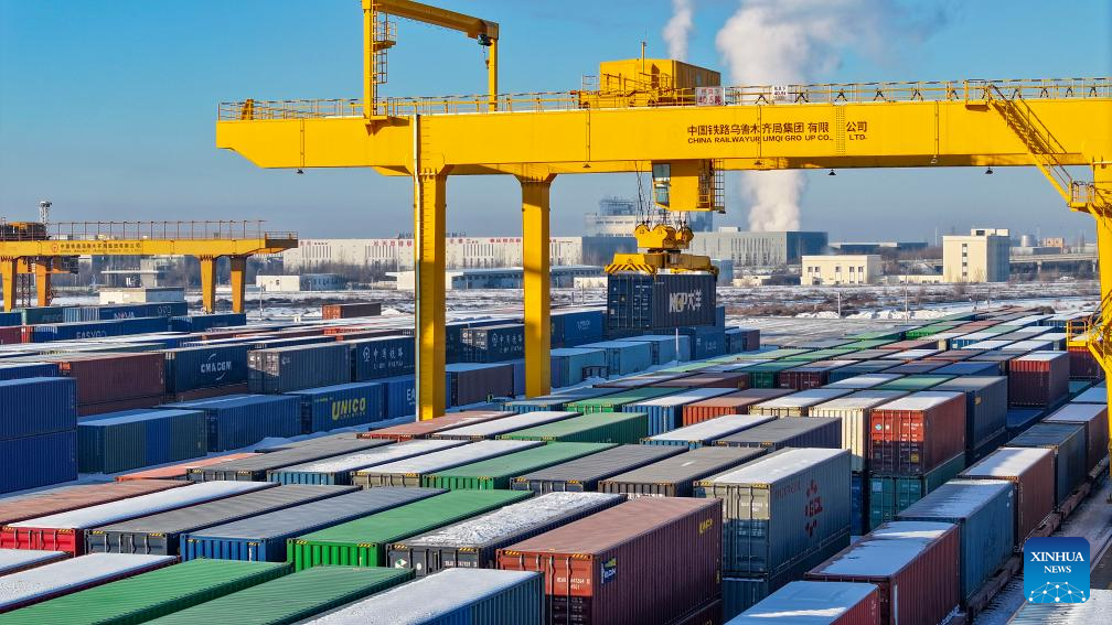 Horgos Port, a major railway hub in Xinjiang, has facilitated 8,541 China-Europe freight train trips by Dec. 24 this year, according to statistics from the railway department of Horgos Port. (Xinhua/Chen Shuo)