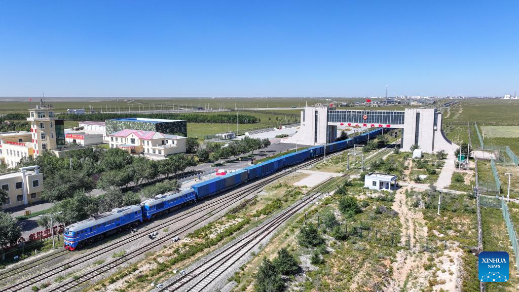 Erenhot, the largest land port on the China-Mongolia border, is a pivotal entry-exit point for the central route of the China-Europe railway service. As of Sept. 3, inbound and outbound passenger traffic volumes and the number of vehicles driving through Erenhot reached 1.976 million and 512,000, respectively, up by 13.2 percent and 16.6 percent compared with the same period of last year. (Photo by Guo Pengjie/Xinhua)