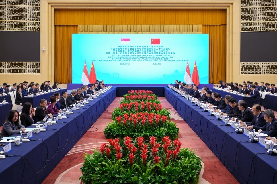 The pledge came as Chinese Vice Premier Ding Xuexiang and Singaporean Deputy Prime Minister Gan Kim Yong co-chaired four bilateral cooperation mechanism meetings in Chongqing.