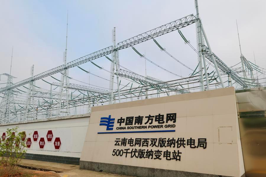 This photo taken on April 16, 2026 shows a substation of Xishuangbanna power supply bureau under China Southern Power Grid Co., Ltd., part of the China-Laos 500-kV interconnection project, in Xishuangbanna Dai Autonomous Prefecture, southwest China's Yunnan Province. (Xinhua/Xiong Xuanang)