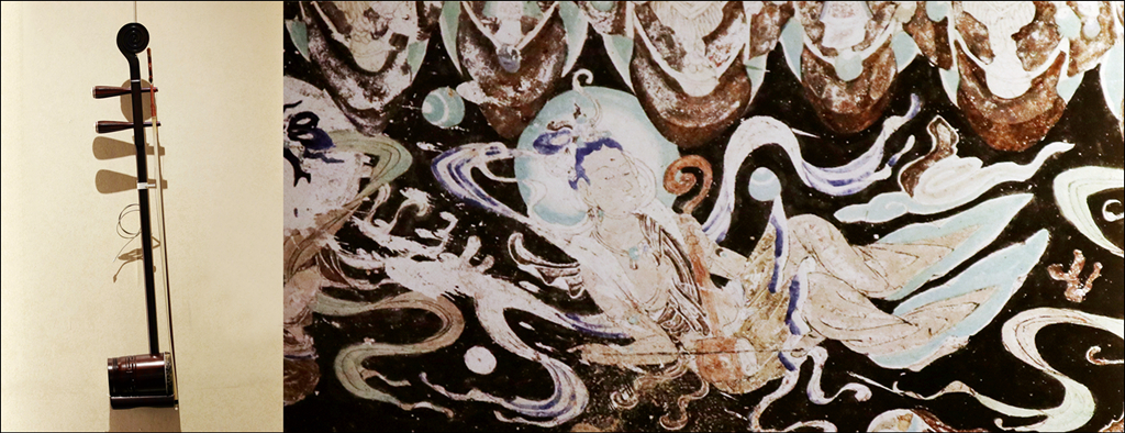 Huqin, a traditional stringed instrument, is seen in a mural in the Yulin Cave of the Mogao Grottoes. [Photo/chinadaily.com.cn]