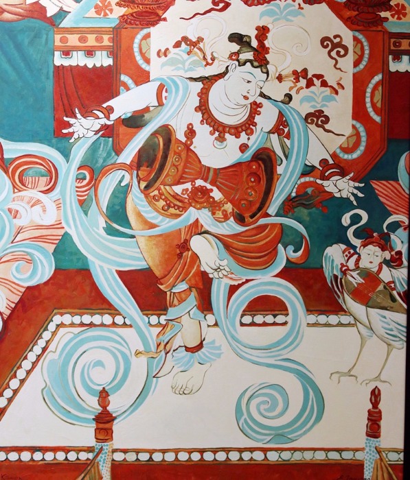 A painting by a Russian artist portrays a Buddhist story from the Yulin Cave No 21 of the Mogao Grottoes. [Photo/chinadaily.com.cn]