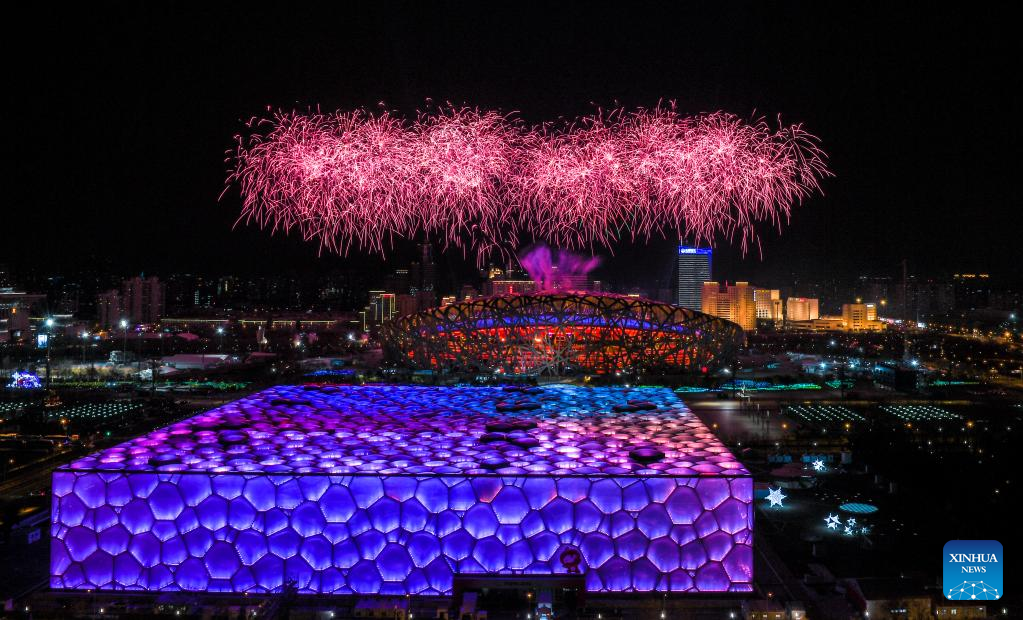 Fireworks illuminate the night sky during the opening ceremony of the Beijing 2022 Paralympic Winter Games at the National Stadium in Beijing, capital of China, March 4, 2022. (Xinhua/Xia Yifang)