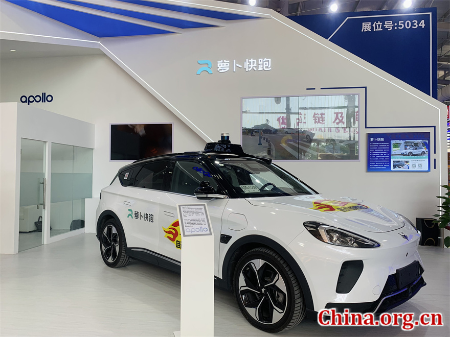 Photo taken on Sept. 1, 2022, of a self-driving car at the 2022 China International Fair for Trade in Services (CIFTIS) in Beijing. [Photo by Liu Jianing/China.org.cn]
