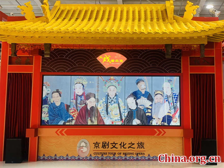 Photo taken on Sept. 1, 2022, of a booth themed with "Culture Tour of Beijing Opera" at the 2022 China International Fair for Trade in Services (CIFTIS) in Beijing. [Photo by Liu Jianing/China.org.cn]