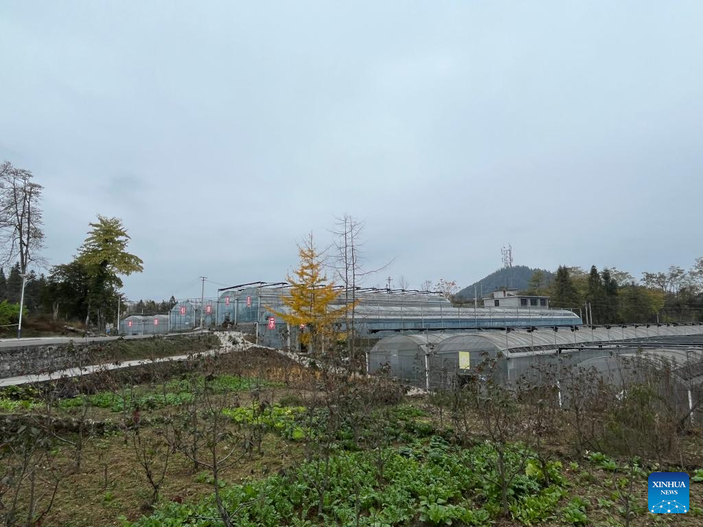 Greenhouses for cherry tree plantation are pictured in Shichao Town, Wuchuan County, southwest China's Guizhou Province, Nov. 17, 2022. (Xinhua/Li Jingya)