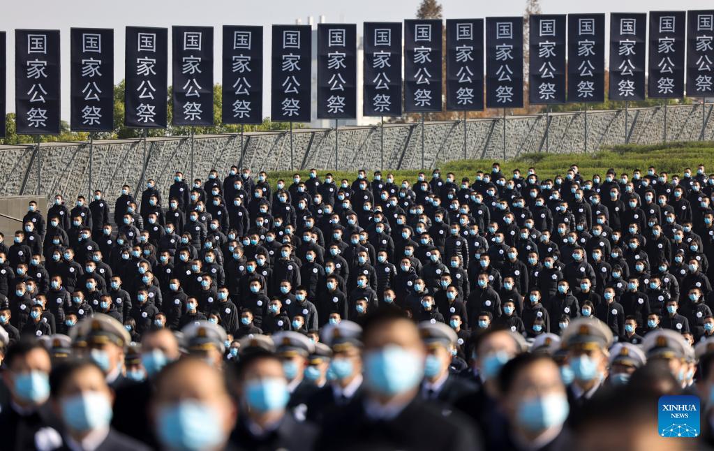 China holds its ninth national memorial ceremony for the Nanjing Massacre victims at the Memorial Hall of the Victims in Nanjing Massacre by Japanese Invaders in Nanjing, capital of east China's Jiangsu Province, Dec. 13, 2022. [Photo/Xinhua]
