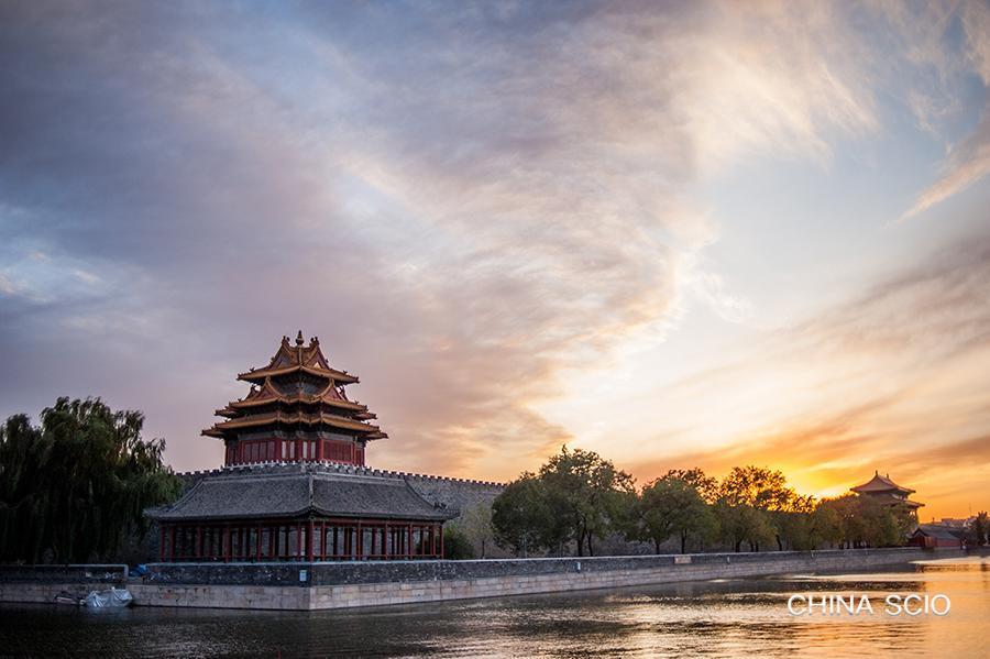 A tower at the northeastern corner of the Forbidden City. Photo taken on Oct. 28, 2017. [Photo by Sun Tao/China SCIO]