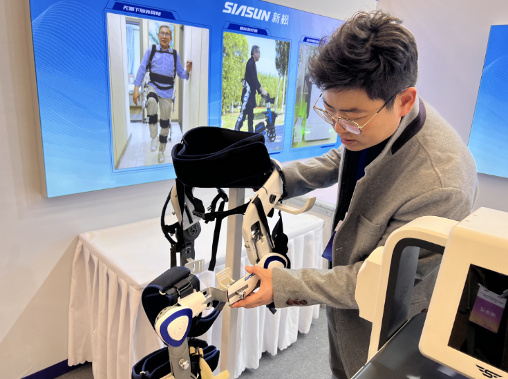 "This passive wearable exoskeleton device can support the hip joint and knee joint of the human body through the mechanical and physical principle of the pendulum by using the gravity of the human body instead of the motor driving force, thus enabling people with impaired mobility to walk," said Zhang Duo, the product manager with the medical technology company Sysmed (China).