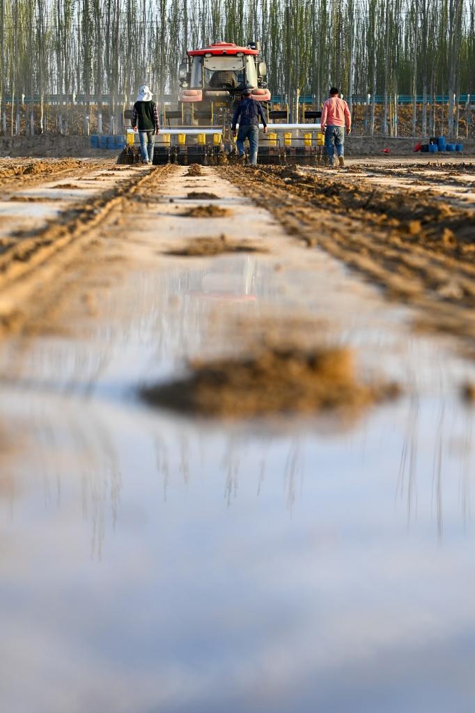Towed by a driverless tractor, a hill-drop planter moves forward and spreads corn seeds at a fixed spacing. As it gets warmer, Luo Junjie, a 31-year-old farmer in Qapqal Xibe Autonomous County of northwest China's Xinjiang Uygur Autonomous Region, is leading his team of 15 busy farmers.