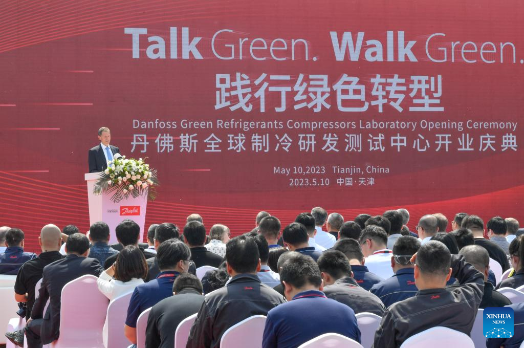 Kim Fausing, president and CEO of Danfoss Group, attends the opening ceremony of Danfoss Global Green Refrigerants Compressors Laboratory in Tianjin, north China, May 10, 2023. Global refrigeration industry giant Danfoss Group on Wednesday announced that its Global Green Refrigerants Compressors Laboratory has been put into operation in north China's Tianjin Municipality. (Xinhua/Sun Fanyue)