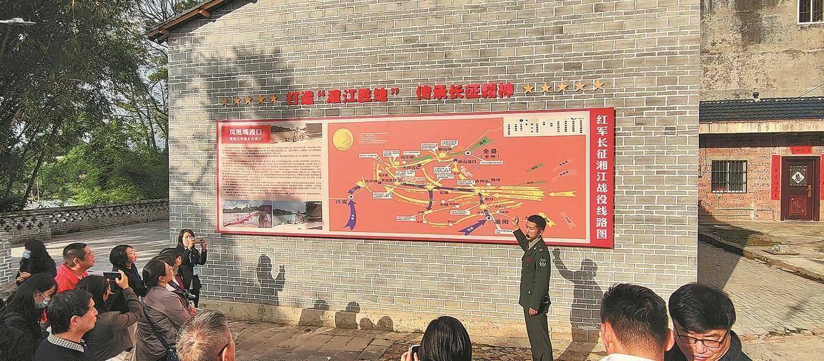 Jiang Chengbo, a narrator at the memorial hall, said the battle, which centered on control of three key ferry crossings along the Xiangjiang River, was so fierce that the bodies of fallen Red Army soldiers piled up in the water, turning it red. He added that according to a local saying, Guilin residents vowed after the battle not to drink water from the river for three years and not to eat fish from the waterway for 10 years in memory of the Red Army.