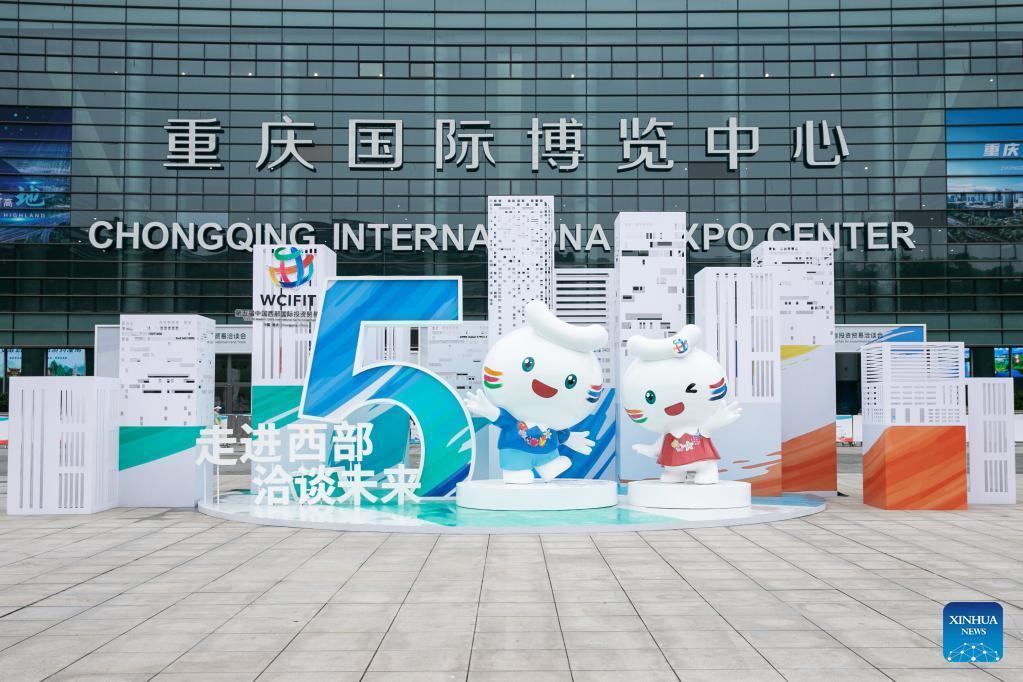 This photo taken on May 18, 2023 shows the exterior view of the venue for the fifth Western China International Fair for Investment and Trade in southwest China's Chongqing Municipality. A total of 88 major projects, with a contracted investment amounting to 290.7 billion yuan (about 41.55 billion U.S. dollars), were signed at the fifth Western China International Fair for Investment and Trade, which kicked off Thursday in Chongqing. (Xinhua/Chu Jiayin)