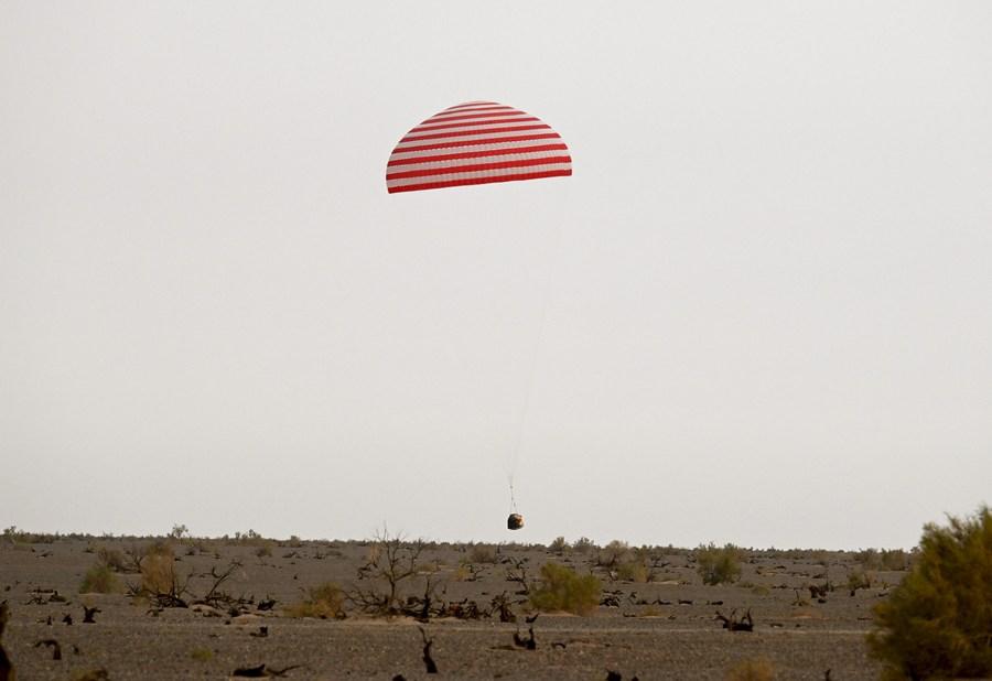 Three Chinese astronauts on board the Shenzhou-15 manned spaceship returned to Earth safely on Sunday, after completing their six-month space station mission.
