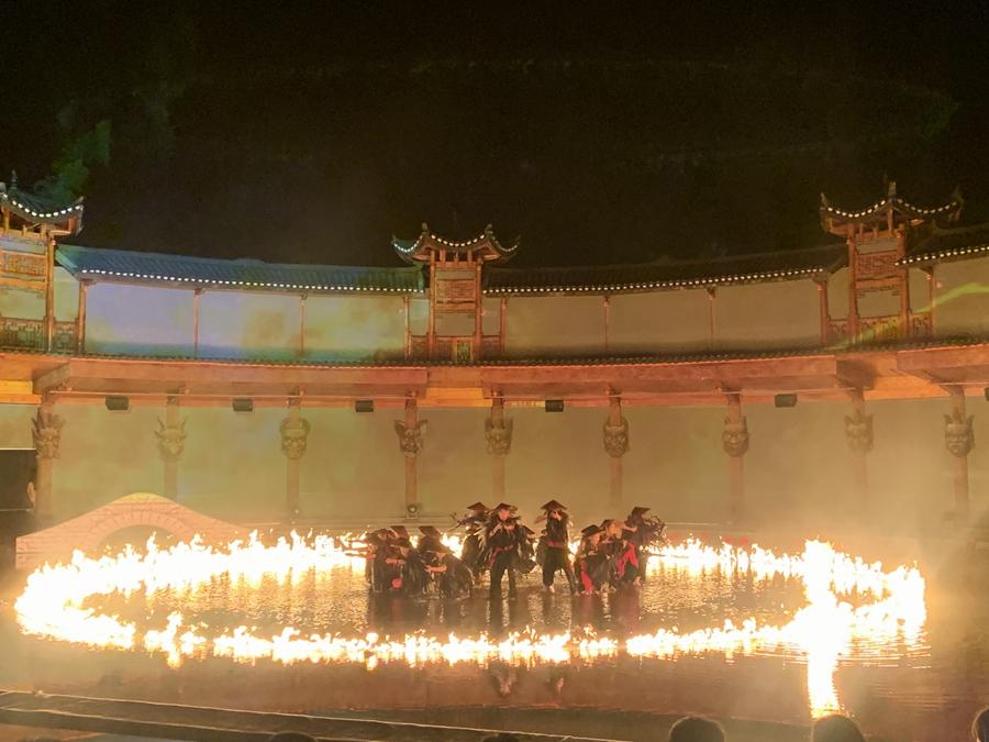 A captivating performance of "Dreamy Dehang" is staged in Dehang Miao village, Jishou city, central China's Hunan province, on June 4, 2023. Combining Miao ethnic culture with breathtaking natural surroundings, the immersive play depicts a love story set in 1938, when a newlywed couple is separated as the groom embarks on a journey to defend the country. [Photo by Liu Jianing/China.org.cn]
