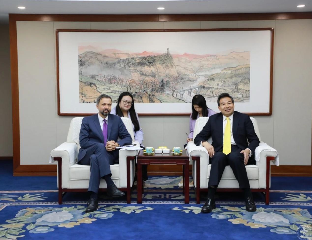 Alvaro Lario (L), President of the UN's International Fund for Agricultural Development, meets with Wang Kai (R), Governor of China's Henan Province, June 6, 2023. [IFAD China Office]