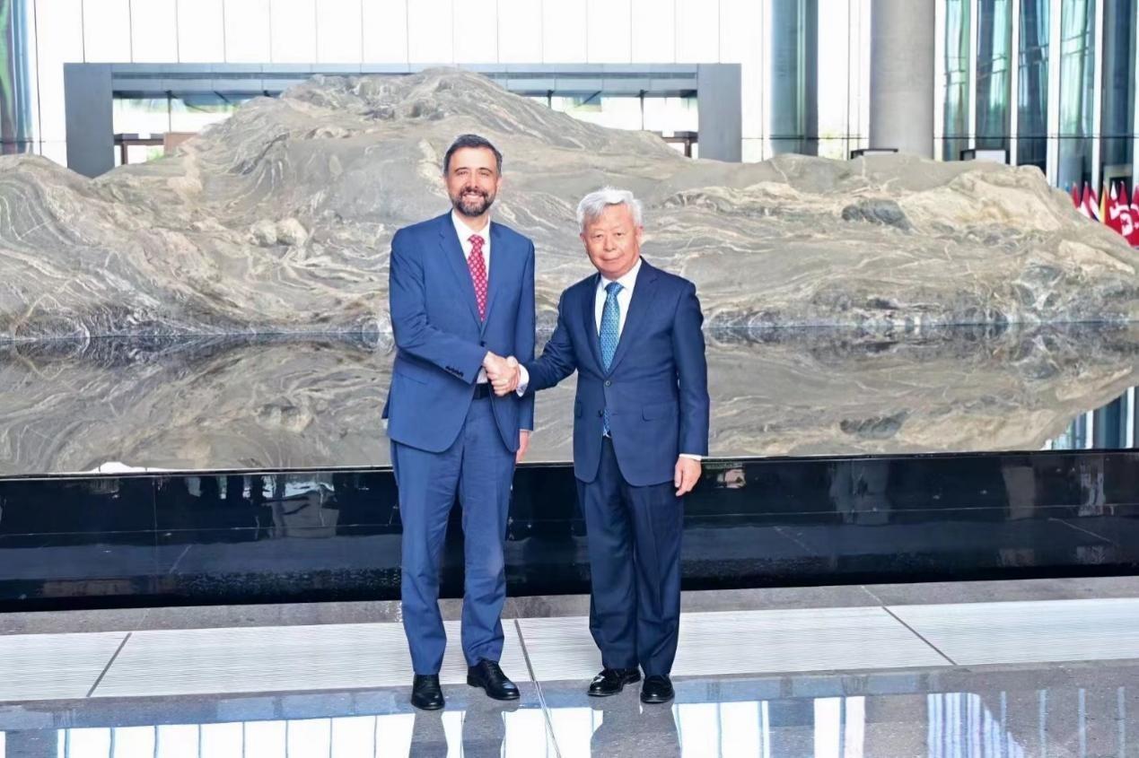 Alvaro Lario (L), President of the UN's International Fund for Agricultural Development, meets with Zhang Wencai (R), Vice President of the Export-Import Bank of China, June 5, 2023. [Photo by Liu Tao/IFAD China Office]
