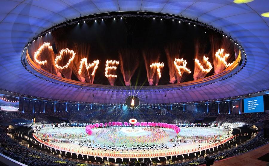 Fireworks at the opening ceremony of the 31st FISU World University Games in Chengdu, southwest China's Sichuan Province, July 28, 2023. (Xinhua/Jiang Hongjing)