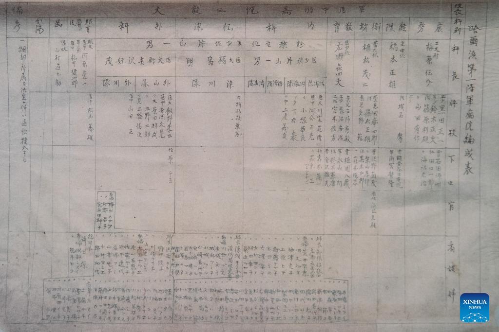 This photo taken on Aug. 5, 2023 shows a photocopy of a document from a Japanese army hospital that cooperated with Unit 731, a Japanese germ warfare army during World War II, in Mudanjiang City, northeast China's Heilongjiang Province. (Xinhua/Zhang Tao)