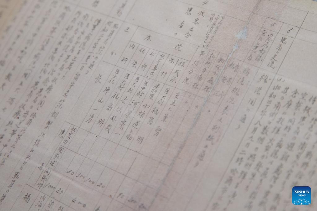 This photo taken on Aug. 5, 2023 shows a photocopy of a document from a Japanese army hospital that cooperated with Unit 731, a Japanese germ warfare army during World War II, in Mudanjiang City, northeast China's Heilongjiang Province. (Xinhua/Zhang Tao)