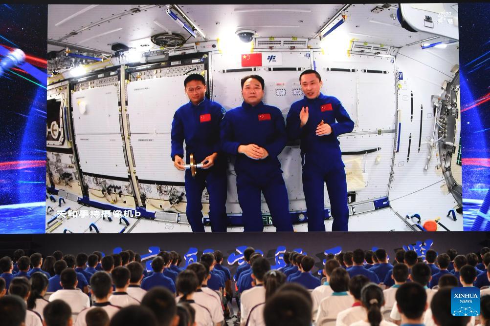 The fourth live class from China's space station was held on Thursday afternoon, delivered by the Shenzhou-16 astronauts Jing Haipeng, Zhu Yangzhu and Gui Haichao to students on Earth.