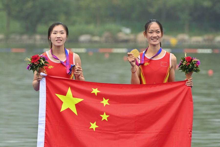 Zou Jiaqi and Qiu Xiuping set the pace for the host nation, clinching the first gold medal of the Games in the women's lightweight double sculls Sunday morning. This marks the sixth consecutive edition where China has secured the first gold of the continental sporting event.