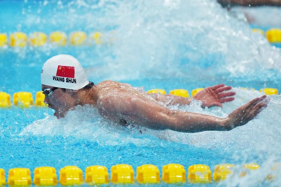 Wang Shun's victory in the men's 200m individual medley was further highlighted by his setting of a new Asian record. Wang maintained a lead throughout and finished first in one minute and 54.62 seconds. Qin Haiyang, China's breaststroke specialist who clinched three golds at the Fukuoka worlds in July, secured second place with a time of 1:57.41. Japan's Daiya Seto finished third in 1:58.35.