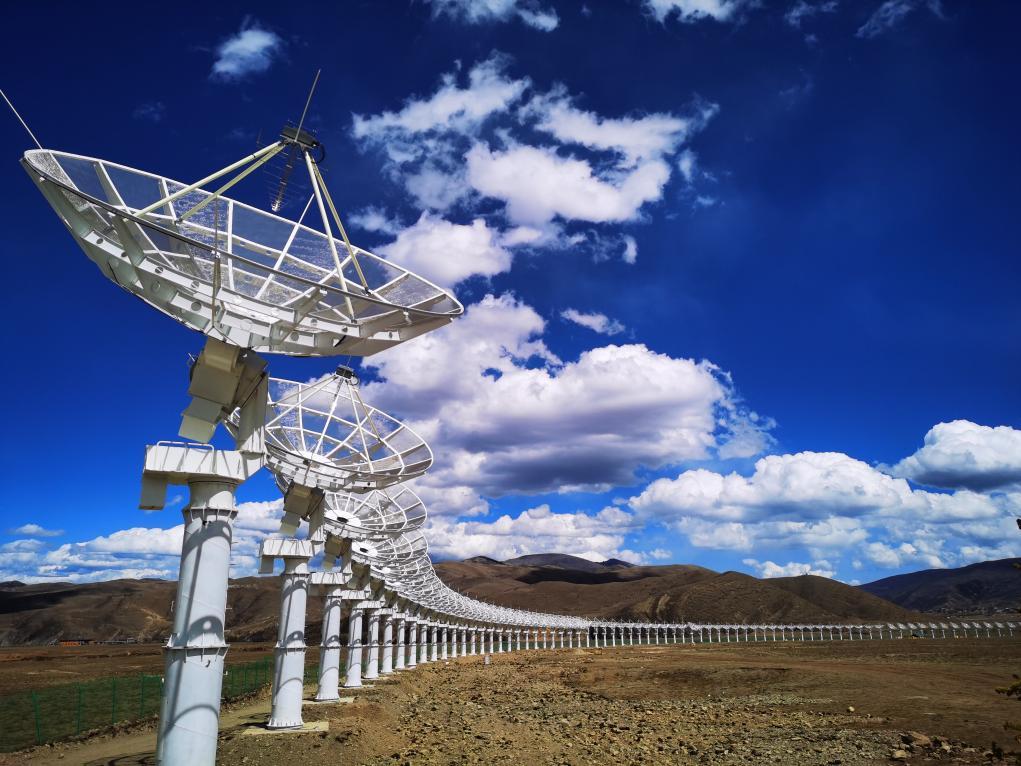 In an open area at an altitude of 3,820 meters in Daocheng County, Sichuan Province, 313 parabolic antennas with a diameter of 6 meters are evenly arranged, forming a large ring with a diameter of 1 km, looking like a string of pearls lying flat on the plateau.