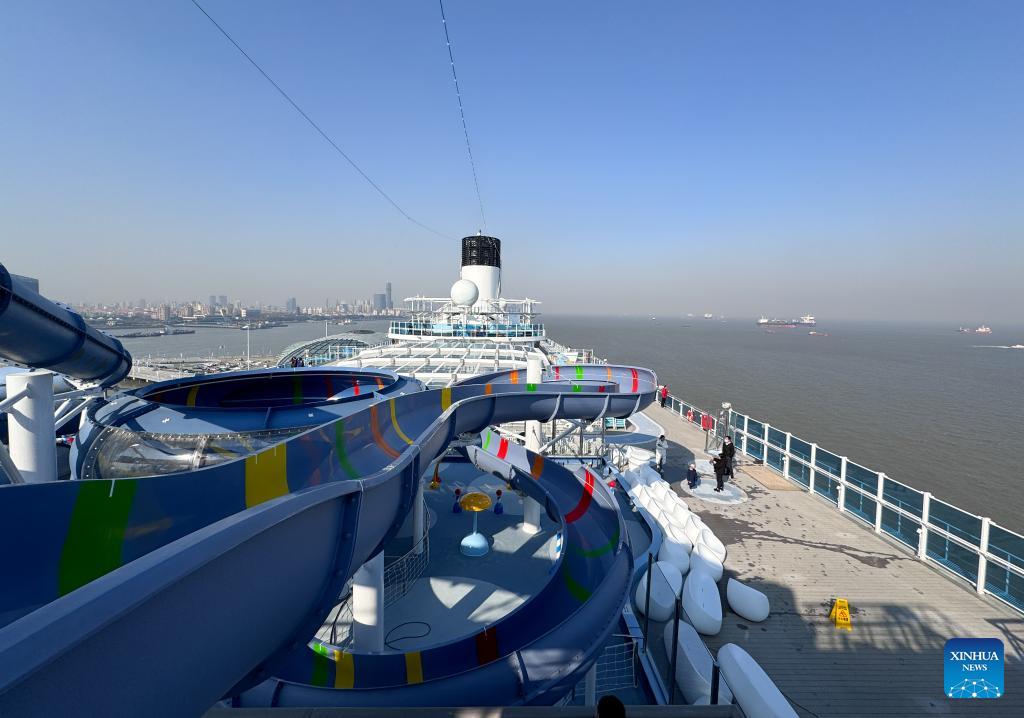 Carrying invited guests and nearly 1,300 crew members from around the world, the ship set off after noontime Sunday from the Shanghai Wusongkou International Cruise Terminal and is expected to return to the terminal on Monday.