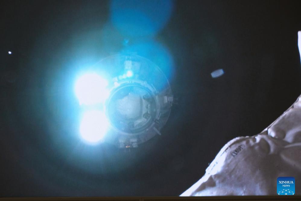 The Shenzhou-17 crew members onboard the space station will enter the cargo craft and transfer the payloads as scheduled. (Xinhua/Li Jie)
