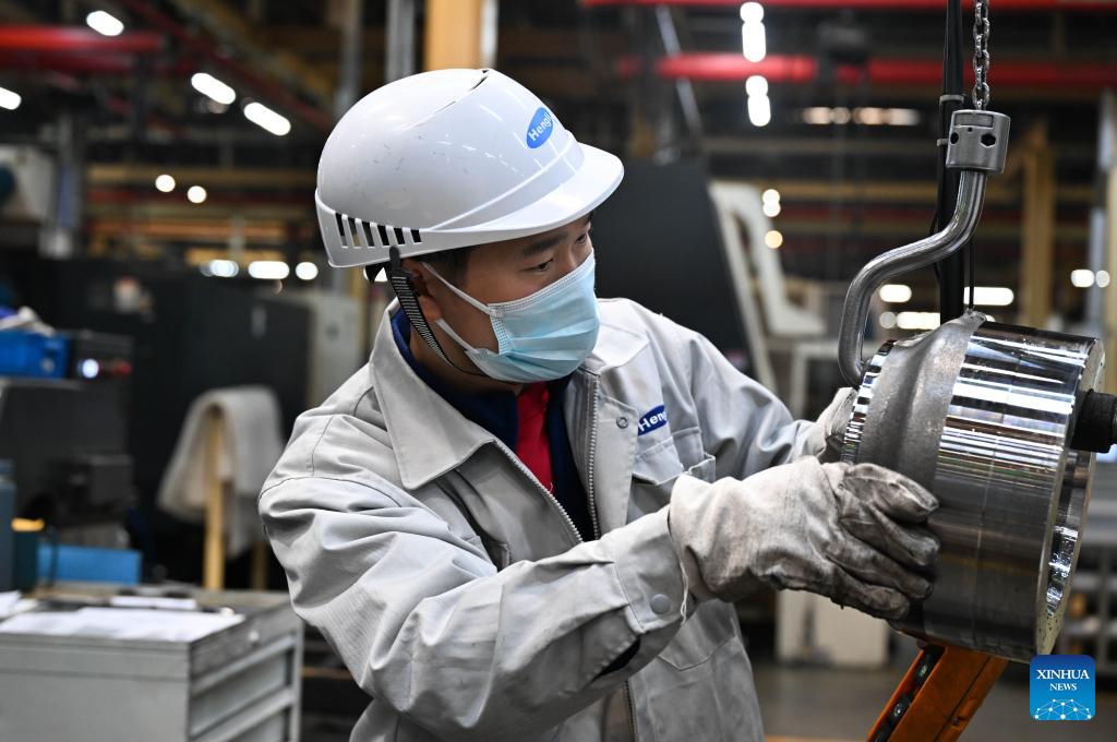 A staff member works at a workshop of the Jiangsu Hengli Hydraulic Co., Ltd. in Wujin District of Changzhou, east China's Jiangsu Province, Dec. 22, 2023. Dubbed as a capital of new energy, Changzhou City, east China's Jiangsu Province, reported a regional gross domestic product (GDP) of 1.01 trillion yuan (about 140.8 billion U.S. dollars) in 2023, up 6.8 percent year on year, the local statistics department said Tuesday.