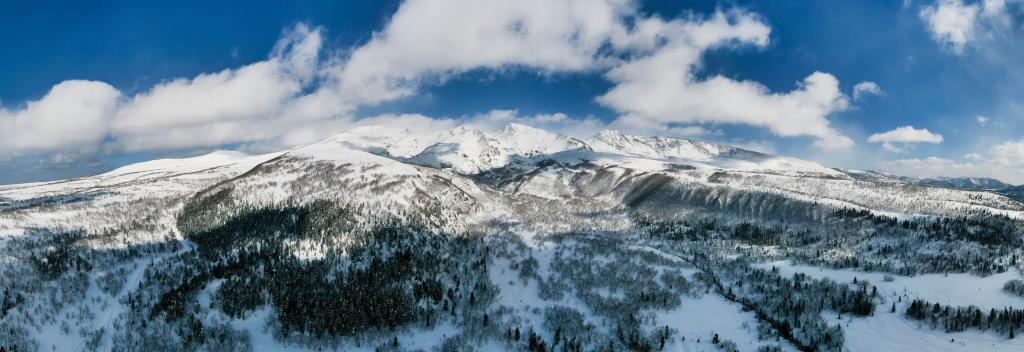 This aerial photo taken on Feb. 8, 2023 shows the main peak of Mount Changbaishan, northeast China's Jilin Province. (Xinhua/Xu Chang)