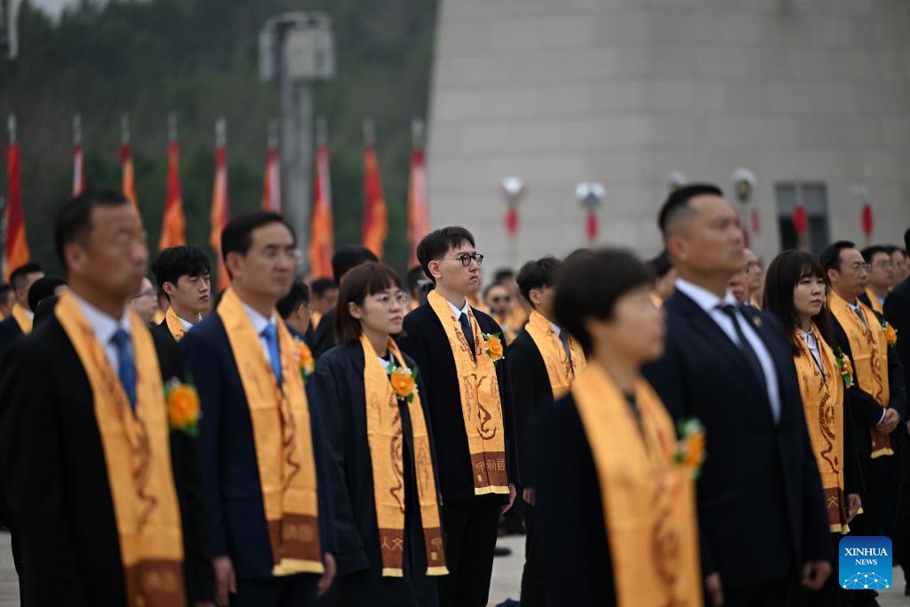 The ceremony is traditionally held on Qingming, or Tomb-Sweeping Day, which falls on Thursday this year. Chinese people mourn their deceased family members and worship their ancestors during the Qingming holiday. (Xinhua/Chen Yehua)