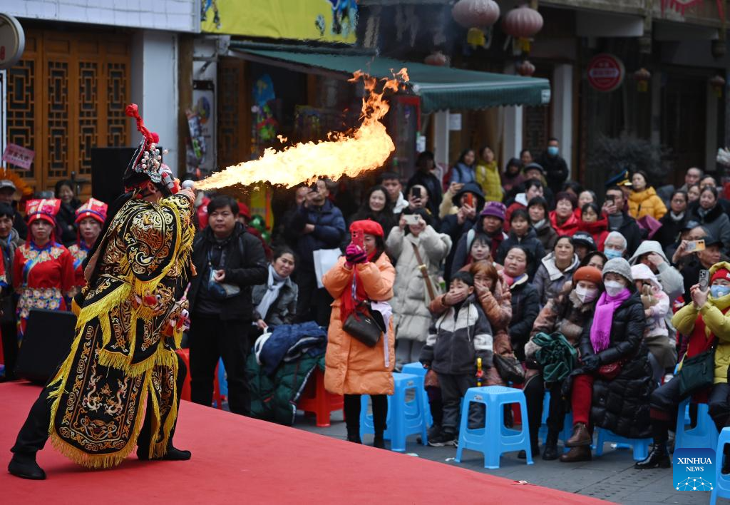People watch a performance of Bianlian, or face-changing, a part of the Sichuan opera, in Dongxing District of Neijiang City, southwest China's Sichuan Province, Feb. 12, 2025. Various activities were held across China to celebrate the Lantern Festival, which falls on the fifteenth day of the first month of the Chinese lunar calendar. (Photo by Tang Mingrun/Xinhua)