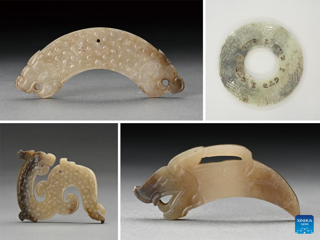 This undated file combo photo shows the jade wares unearthed from the Wuwangdun Tomb in Huainan City, east China's Anhui Province. Six significant archaeological sites in China were named the top new discoveries in 2024, announced Wednesday at an annual forum hosted by the Chinese Academy of Social Sciences.
