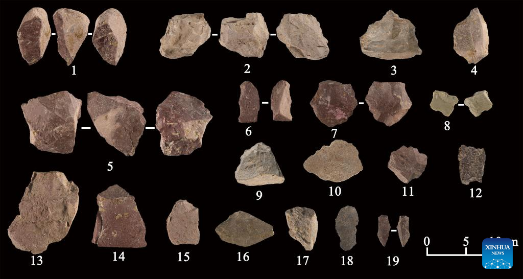 This undated file photo shows the stone artifacts unearthed from the Xiatang neolithic site in Xianju County, east China's Zhejiang Province. Six significant archaeological sites in China were named the top new discoveries in 2024, announced Wednesday at an annual forum hosted by the Chinese Academy of Social Sciences.