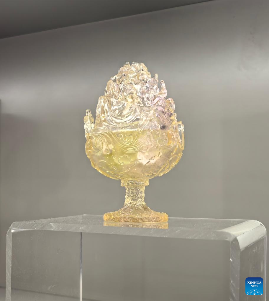 A cultural creative product inspired by a 2,000-year-old gilt-bronze incense burner, known as the Boshan censer, is displayed for sales at Hebei Museum in Shijiazhuang, capital of north China's Hebei Province, on Feb. 20, 2025. (Xinhua/Zou Shangbo)